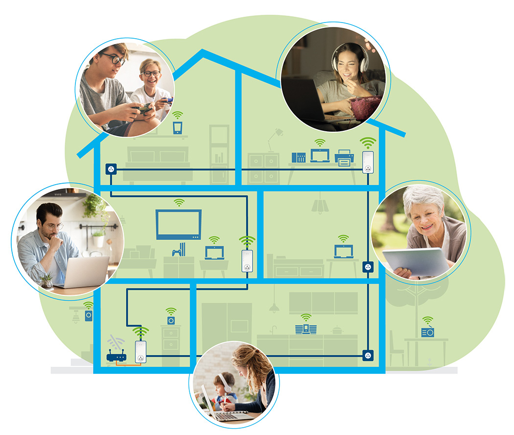 Wi-Fi is a convenient form of home networking. But depending on the nature of the living space, it cannot always be used optimally, as thick ceilings and walls significantly weaken the signal. Retrofitting LAN cabling, meanwhile, is associated with effort and expenses. This is where Powerline comes into play.