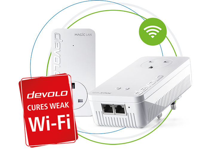 Our WiFi-capable Powerline adapters carry the internet signal over the power lines. This brings the signal to every room on every floor. All you need is at least two devolo Magic adapters, one of which you connect to the router, plugging the other into a power socket where you need WiFi.
